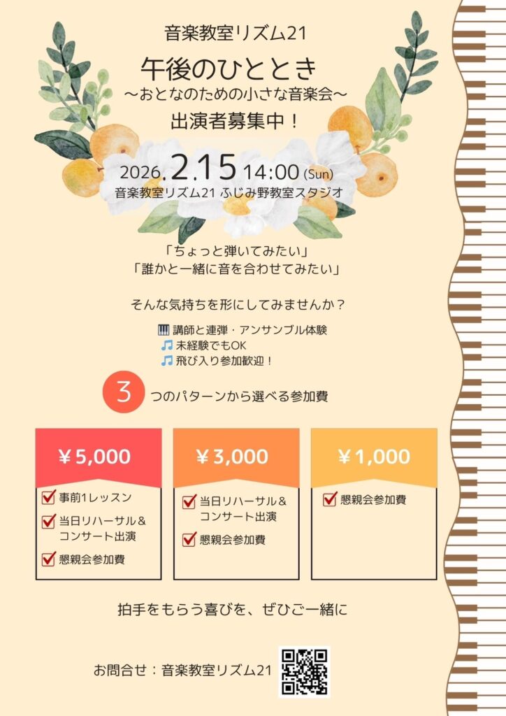そんなリズム21では、現在、『おとなのための小さな発表会』 を企画しております✨